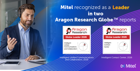 Mitel, a global leader in business communications, today announced for the second consecutive year that it has been named a Leader in the Aragon Research Globe™ reports for both Intelligent Unified Communications and Collaboration (iUC&C) and Intelligent Contact Center (iCC).