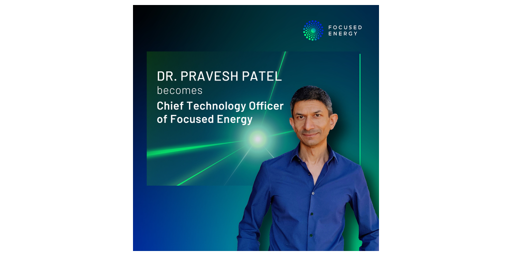 Focused Energy, a laser-based fusion startup, is proud to announce Dr. Pravesh Patel as its new CTO. In his new role, Dr. Patel will lead the company’s science and technology strategic planning and execution, developing the path to the commercialization of fusion energy.
